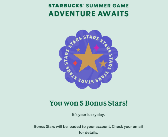 The sweepstakes runs from May 15th to June 18th, 2023. It is open to Starbucks Rewards members and residents of the United States who are at least eighteen years old. No purchase is necessary to enter or win. The game consists of an instant-win game, a sweepstakes, and another little game! Free stars, anyone?