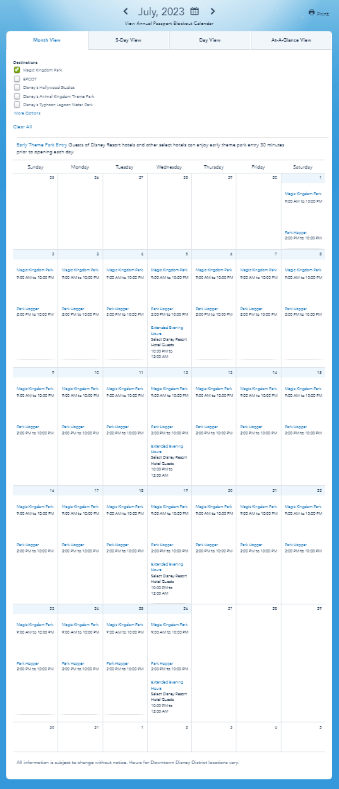 At the time of publication, Disney has only released park hours through July 15th, 2023.