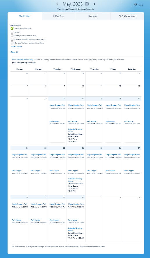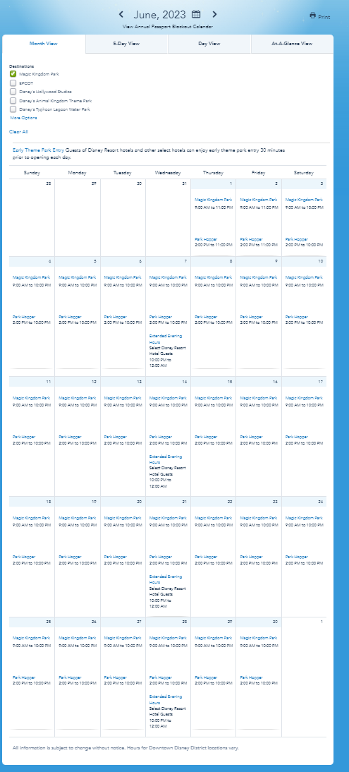 Now, the usual caveats apply. These times are current as of the publication of this post. Disney may make adjustments to their hours during your visit, so make sure you monitor the Disney website and the My Disney Experience app for the most current park hours information!