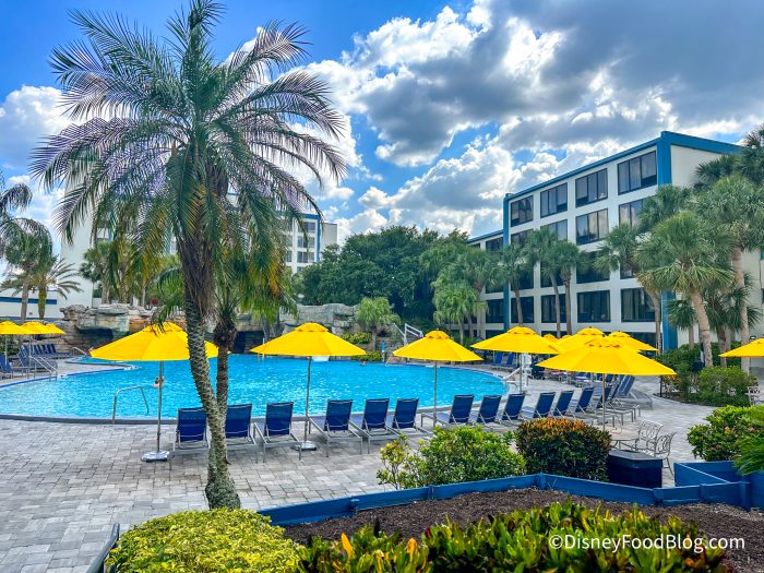 This hotel is a Disney World good neighbor hotel, and guests get access to complimentary scheduled transportation not only to Walt Disney World but also to Universal Orlando Resort.