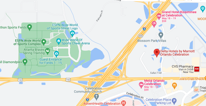 The Delta Hotels by Marriott Orlando Celebration is located in Celebration. It is off HWY 192 and close to I4.