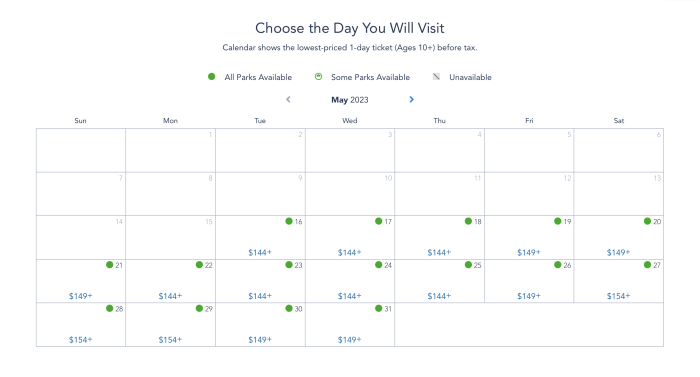 If Genie+ hit a high of $35 for the dates surrounding Easter, it stands to reason that it could hit that same price (or be even more expensive) around Memorial Day too. Now, let’s look into how much the park ticket will cost as well.
