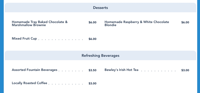 And finally, there are some limited dessert options and drinks (really just fountain drinks, coffee, and hot tea).