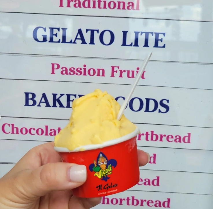 The first Gelato Lite flavor available is Passion Fruit, which sounds pretty refreshing and delicious! You can grab it right now in Disney Springs.