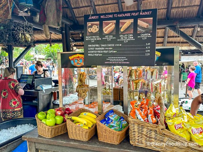As we were enjoying our stroll through Africa around Harambe Village, we got a bit hungry and went in search of a snack. Since the Harambe Fruit Market was nearby, we decided to check out their menu and look for something to eat.