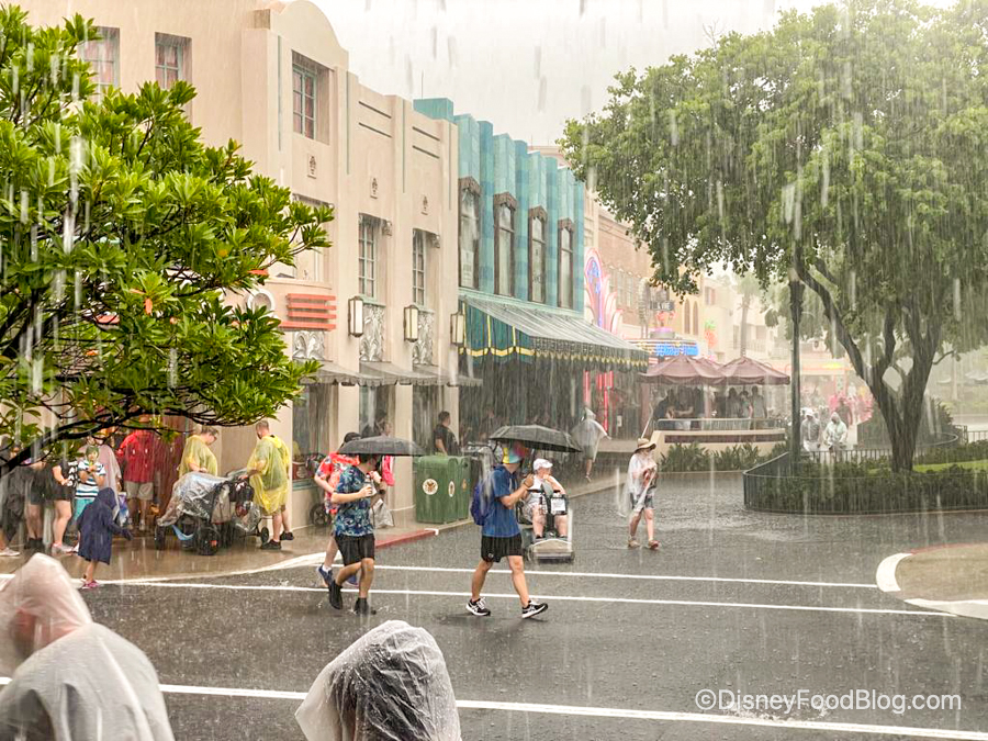You can also read that full post for a breakdown of what happens at Disney World when it rains. Some things you’ll want to be prepared for include potential flooding, the swap from the traditional parade to a rainy day parade, and larger lines and crowds at indoor locations/shops/restaurants/rides/shows as people flock to spots where the rain won’t impact them.