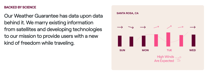 Here’s how it works. First, you’ll book a trip through one of the travel platforms that has partnered with Sensible Weather. You’ll see the “Weather Guarantee” at checkout. You’ll be able to see the cost and add it to your trip price (like travel insurance).
