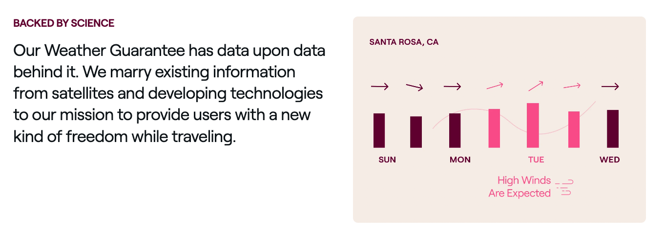 The key service at Sensible Weather is their “Weather Guarantee” which gives YOU some financial protections against weather issues that could ruin your trip.
