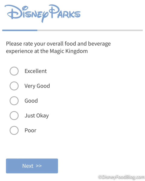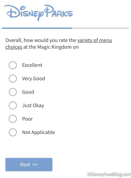 Just a few days ahead of the booking start date for vacation packages with the Dining Plan, one of our reporters was in Magic Kingdom. Following their visit, they got sent a survey by Disney asking some dining (and shopping) questions.