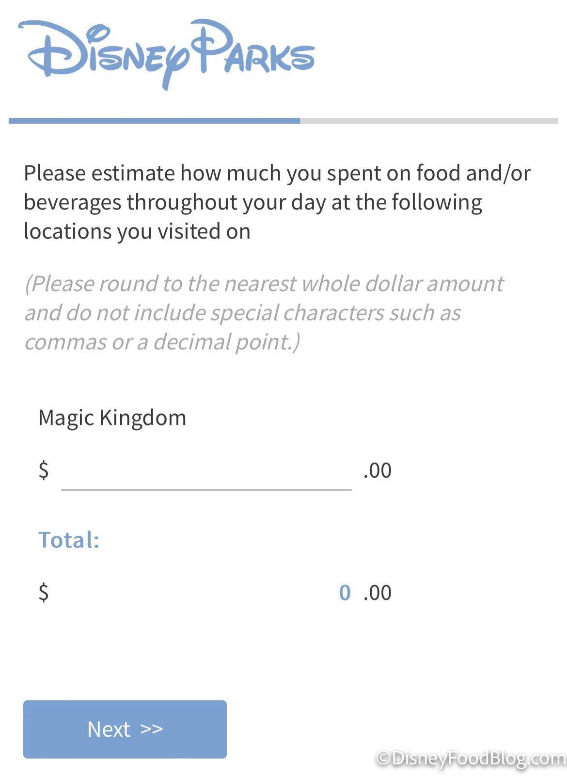 Disney also inquired about how much money our team member spent on food and beverages throughout the day. That information (when obtained from many guests across many parks/restaurants/park days) could give Disney some critical details about how much money people do spend in the parks on food. That can better guide them on future pricing changes (increases or decreases) on meals/snacks and maybe even pricing on the Disney Dining Plan.