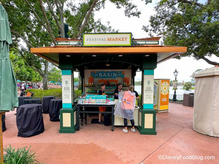 If you happen to visit EPCOT during a festival, you might pass by a Basin kiosk in the World Showcase. This kiosk is determined to take a rainy day and make it WAY better.