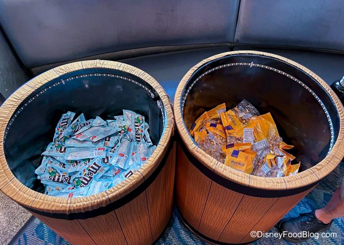 Btw, did we mention you can grab some FREE snacks here? That includes some M&Ms and nuts.