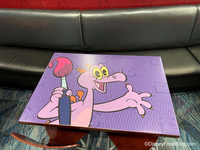A cute detail we found in the lounge is that the tables look like the Annual Pass cards, like this Mickey one.