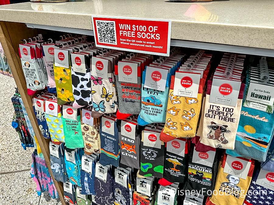 And while you wait to see if you’ve won, you might want to check out their socks at their kiosk in Disney Springs.