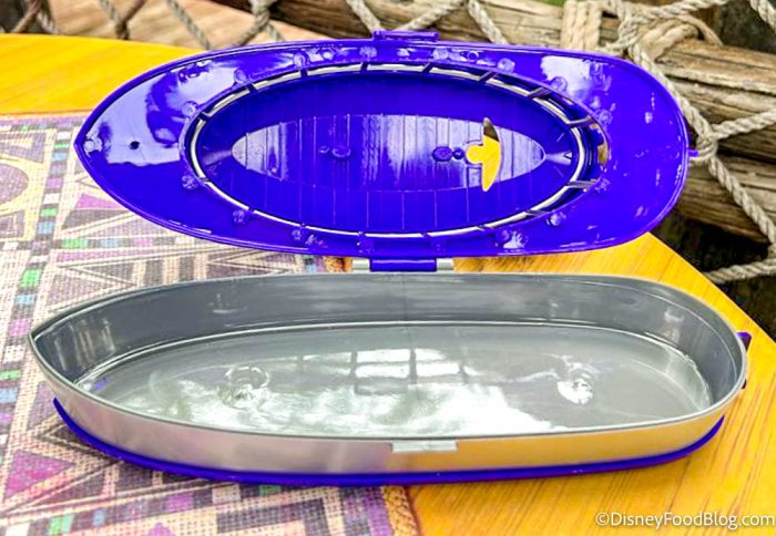 The top part is actually a lid, so you can put your DOLE Whip inside the dessert bowl. We’d advise against that if you plan to pack up this souvenir and take it home, ’cause it might be tricky to wash it out after you’ve finished eating (and you don’t want a sticky souvenir in your suitcase!).