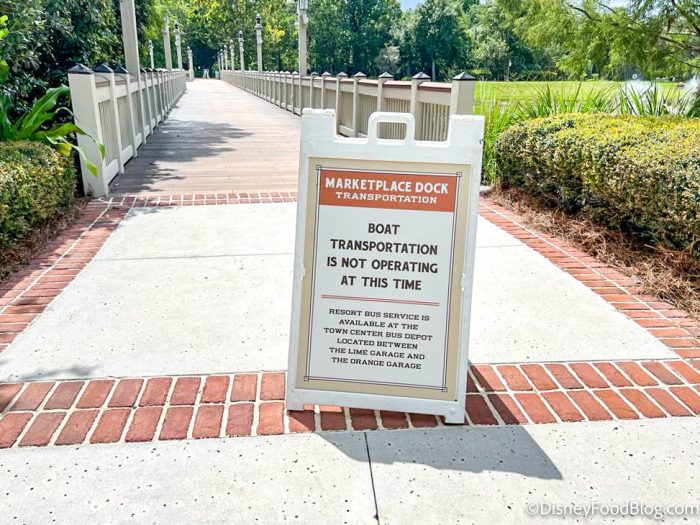 You can see the signage below at a dock in Disney Springs showing that the boat service is NOT available.