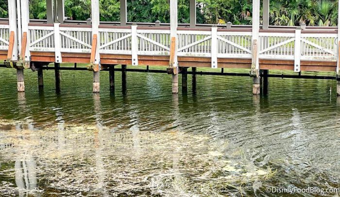 But things aren’t as they normally are right now. A Cast Member at Saratoga Springs told us that the dock area had been drained for about a week. Apparently, a lack of rain in areas up north has impacted some of the waterways to get to Disney Springs.