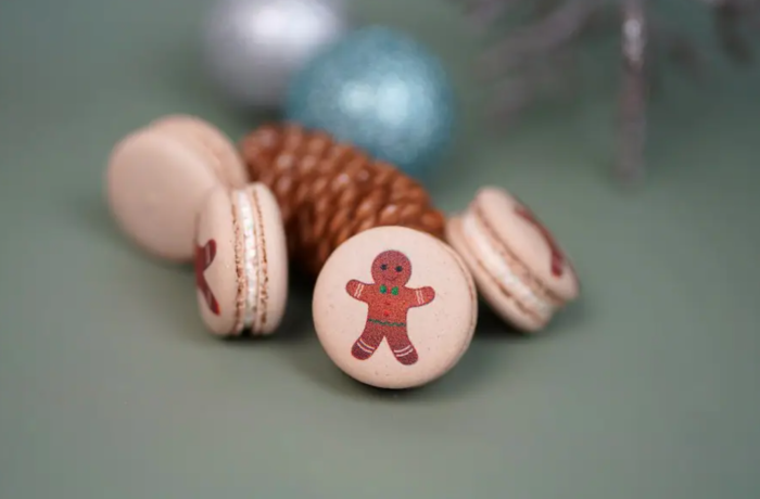 - Gingerbread Man Macaron: Gingerbread man printed macaron with gingerbread buttercream (New)