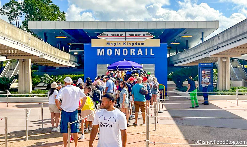If you drive or take a rideshare to Magic Kingdom, you will be taken to the Ticket and Transportation Center, where you’ll have to take the Monorail to the park itself. There’s just one problem with that: the lines at the Ticket and Transportation Center for the Monorail can get VERY long and it might be a while before you can get to Magic Kingdom.