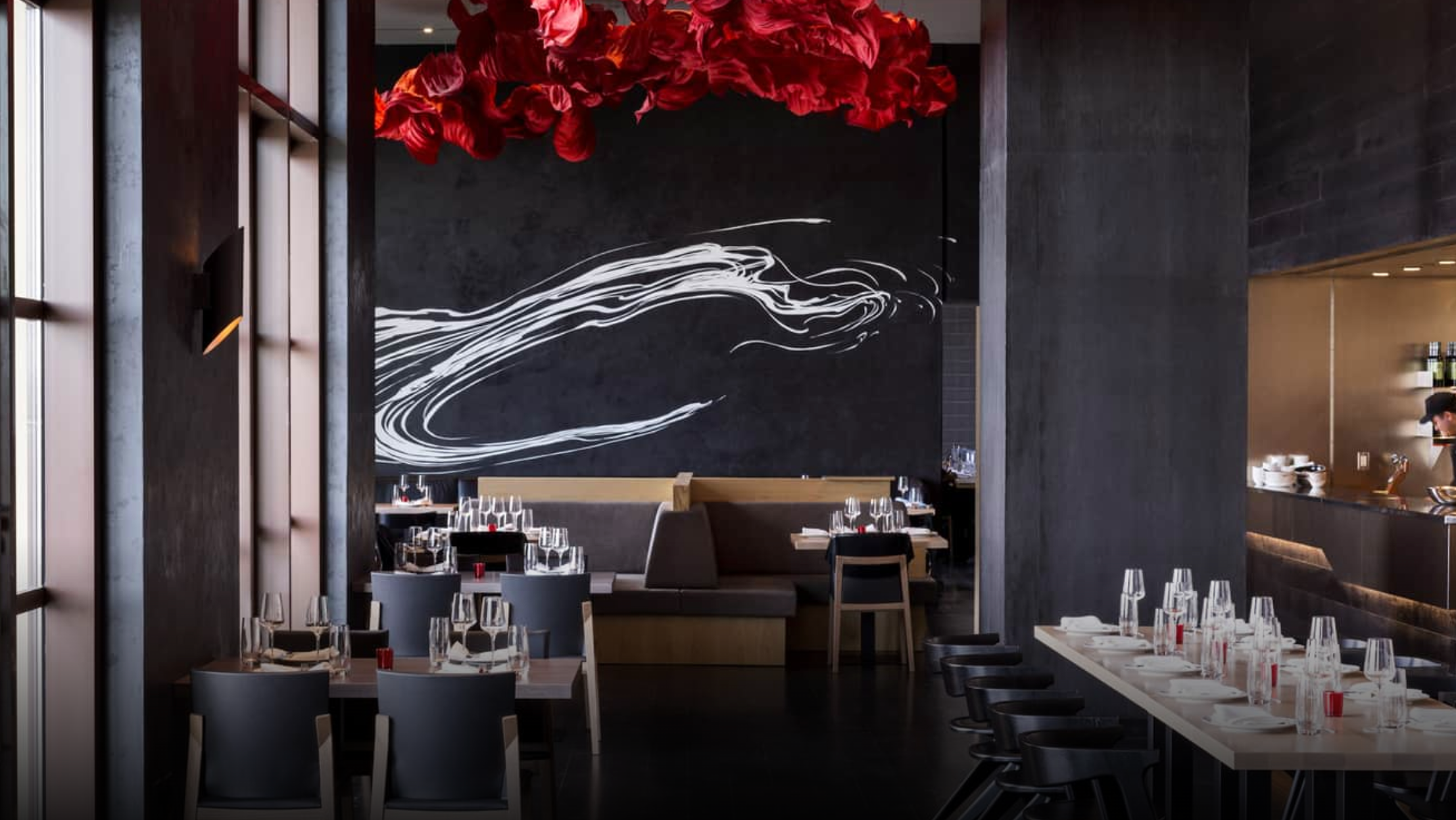 The vibe here is very modern, it feels like a nightclub with loud music and low lighting — it’s probably not where you want to bring kids.