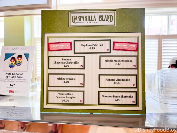 These treats are available now for a limited time at Grand Floridian’s quick-service restaurant, Gasparilla Island Grill. This is a popular location for seasonal Disney treats to land temporarily so we were glad to see a few of these already out and available! (Warning: the treats are only available through June 15th, so you’ll want to head over quick to try them!)