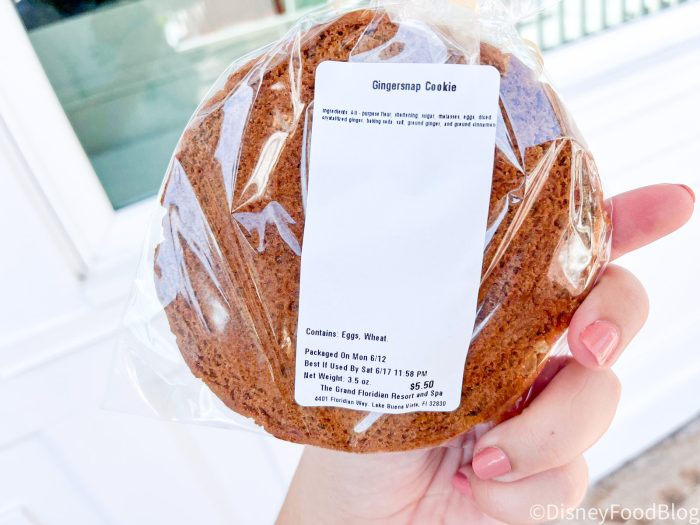 While we enjoyed the cookie, we felt like the one we picked up was baked just a smidge too long because the edges were a little dry and crumbly. We would call this a ginger cookie for sure but not really a gingersnap because it doesn’t “snap” — it’s more soft in the middle, and we’re not sure that the crunchy outside was intentional.