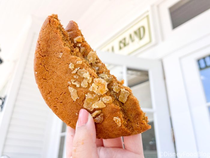 Our other critique of this cookie has to do with the flavor — if you get a bite with multiple pieces of candied ginger, it can be overwhelming. We would recommend trying this cookie if you’re a true ginger flavor fan but you may want to pass if you were expecting a milder flavor with a crispy, snappy cookie.