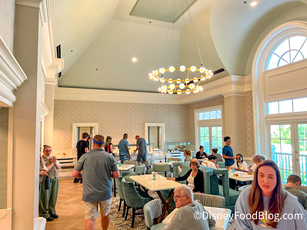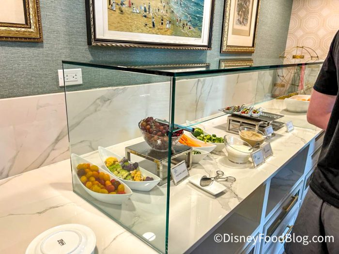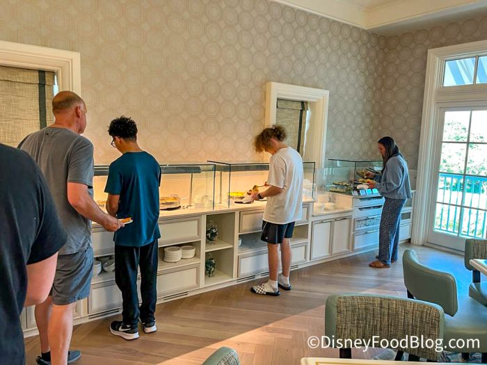 As a reminder, the Concierge Lounge is only available for Club Level/Concierge Level guests as an added luxury for those willing to pay the higher cost of these rooms. You’ll commonly find a continental breakfast here, as well as light snacks, wine, cheese, desserts, drinks, and some adult beverages. Dining here before heading into the park is a great way to save some money by not paying for a meal, and you can bring the bottled drinks into the parks with you.