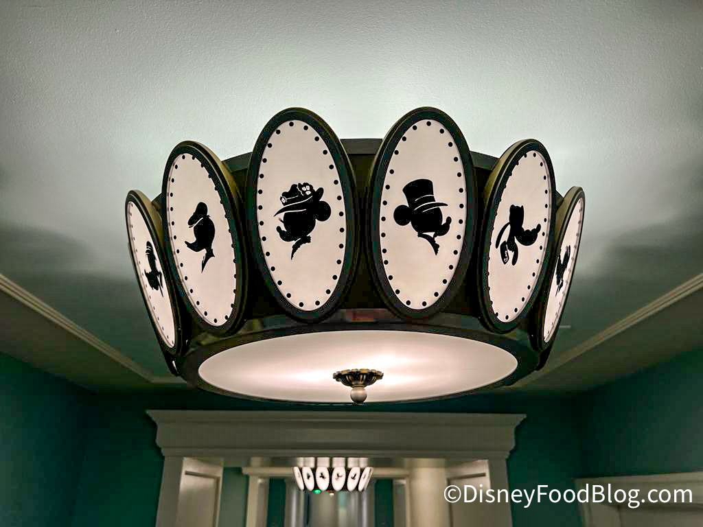 Now, let’s take a closer look at the decoration that probably stood out to you the most: the LIGHTS! They may be one of our favorite features of the hallway redesign. We love the way this light showcases some of our favorite Disney pals like Mickey, Minnie, Pluto, Goofy, and Donald; they look so dapper!