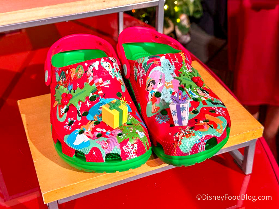 You’ll need something to complete the look though…why not “wrap” it all up with these adorable Disney character Crocs! They’re already full of holiday cheer exchanging gifts with each other with the likes of Goofy, Mickey, Pluto, Genie, Alice, Cheshire Cat, Dumbo, and so many more.