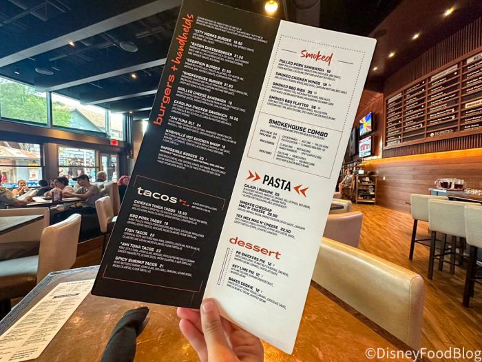 During this visit, we opted for a meal indoors at City Works Eatery & Pour House. This restaurant can be found in The Westside section of Disney Springs near House of Blues, Cirque Du Soleil, and the M&Ms Store. It’s also helpful to note that the closest parking areas to this restaurant are surface parking and the Orange Garage.