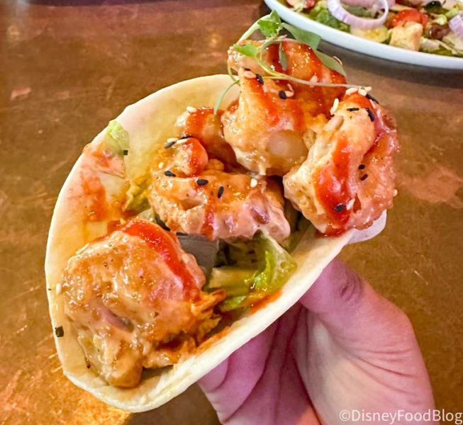 For our main entree, we were eager to try out the Spicy Shrimp Tacos.