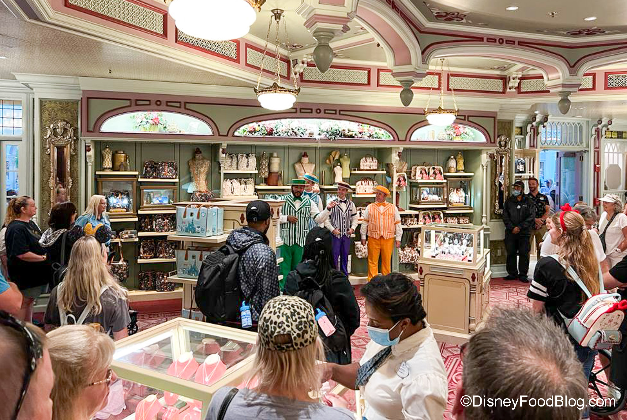 However, they appeared in a new location today, and let’s just say it made our shopping trip a little more fun. Instead of performing on Main Street, U.S.A., we found the Dapper Dans just a few steps away inside the Uptown Jewelers shop.