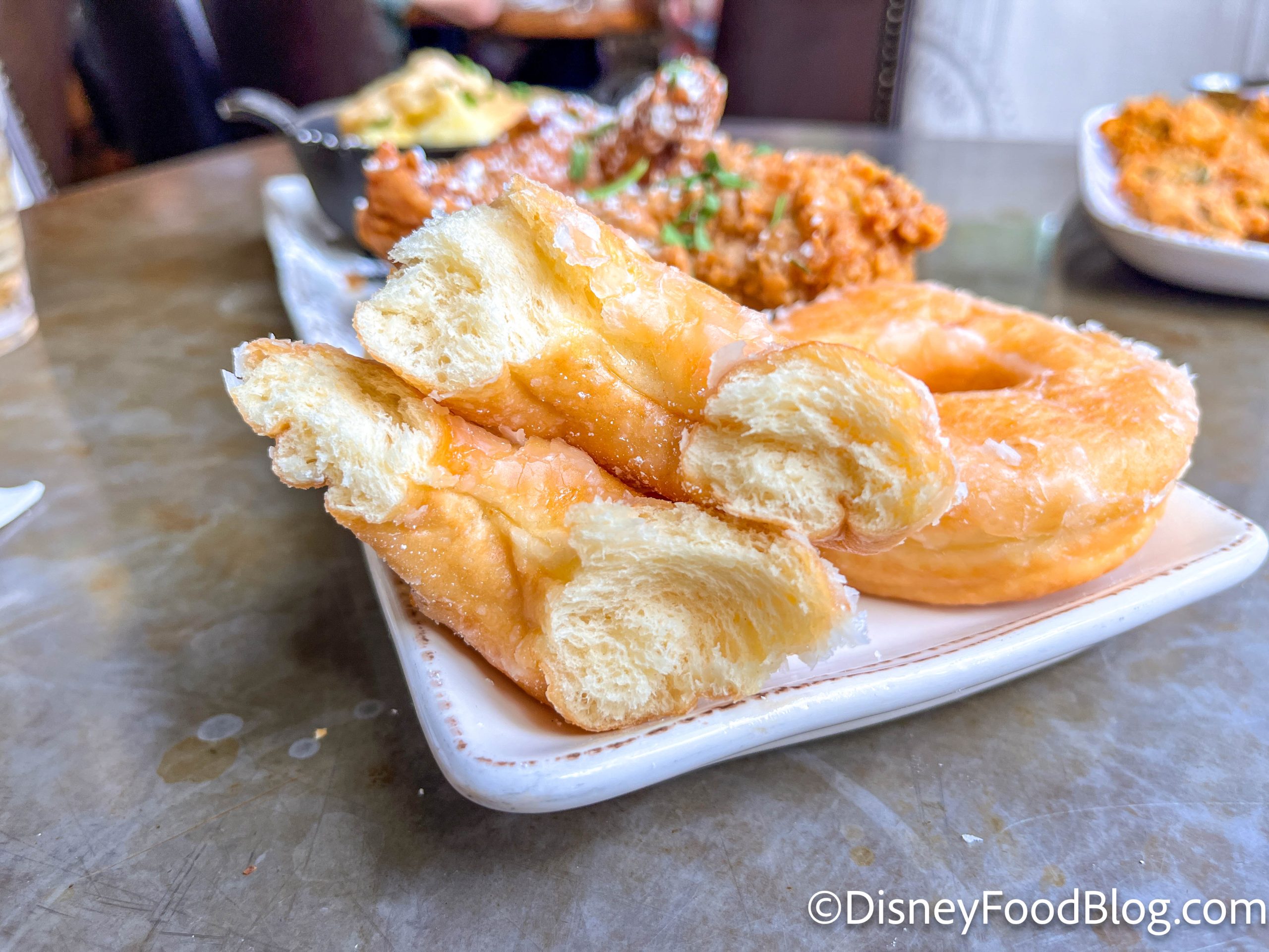 Let’s start with the Fried Chicken & Doughnuts. This is a Homecomin’ staple because Chef Art Smith is known for his spectacular fried chicken. And with the menu changes earlier this year, this item changed from including house-made doughnuts to now having doughnuts from Everglazed Donuts & Cold Brew, which is located in Disney Springs on the West Side.