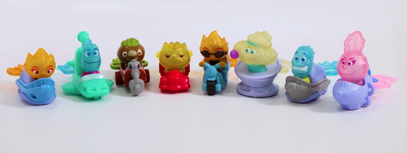 McDonald’s has announced its next set of Happy Meal toys, and they feature characters from Elemental! The eight new toys show some of Element City’s iconic residents, including the two main characters, Wade and Ember.