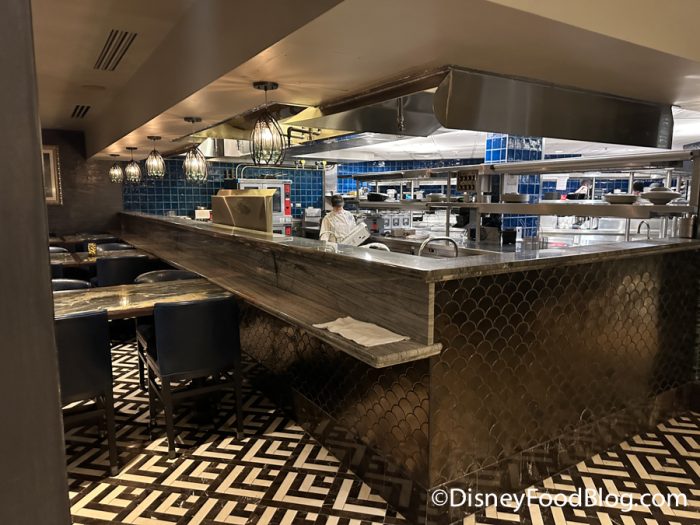 And, who am I to stop you? But, if you are looking for a fine-dining experience during your vacation, Disney World actually has some great options! Fans of seafood (hi, it’s me) would be remiss if they didn’t consider venturing to Disney’s BoardWalk for a meal at Flying Fish. Not only is the BoardWalk a fun experience on its own, but this restaurant is also a worthwhile stop on your trip for its beauty and delicious food. Recently, they added some new items to the menu, so I stopped by for a late dinner to check it out.