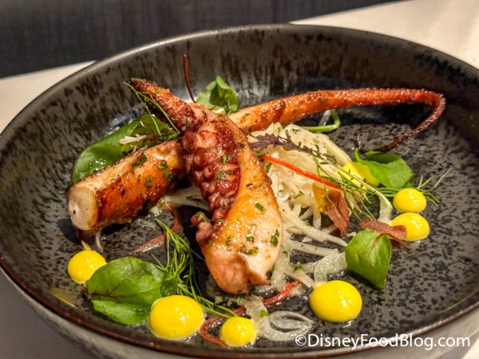The Spanish Octopus, for $21, was served with Saffron Aïoli, Shaved Fennel, and Crispy Garlic.