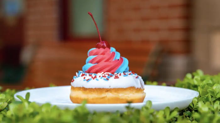 - Fourth of July Donut: Cotton candy icing donut filled with strawberry compote, red, white, and blue whipped topping and sprinkles (New)