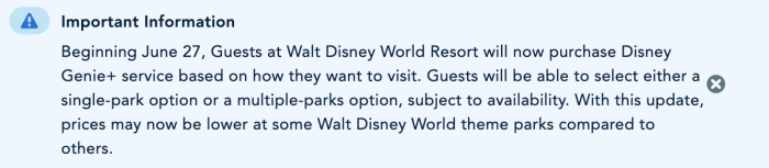 Today, June 27th, Disney World’s Genie+ system is now a per-park, per-day service, meaning that the price will depend on which park you’re visiting, and you can select between skipping the lines for a single day or multiple days.