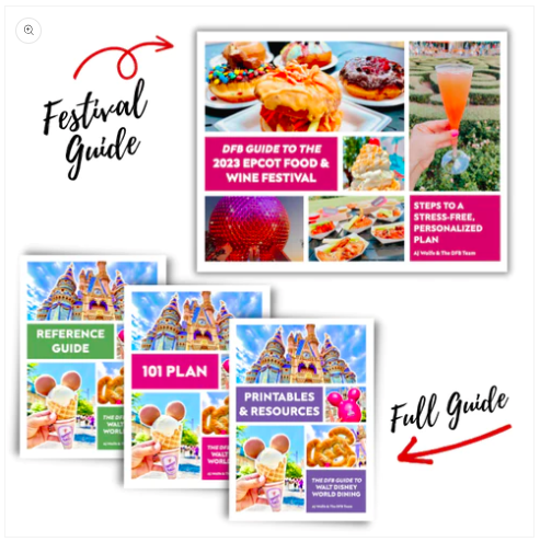 But when you’re in Disney World, you’re probably going to visit the other parks too, right? (We love EPCOT, but you can’t miss the other three parks!) So you can get our DFB Food & Wine Festival Bundle, which includes both the Food & Wine Festival Guide and the DFB Guide to Walt Disney World Dining.