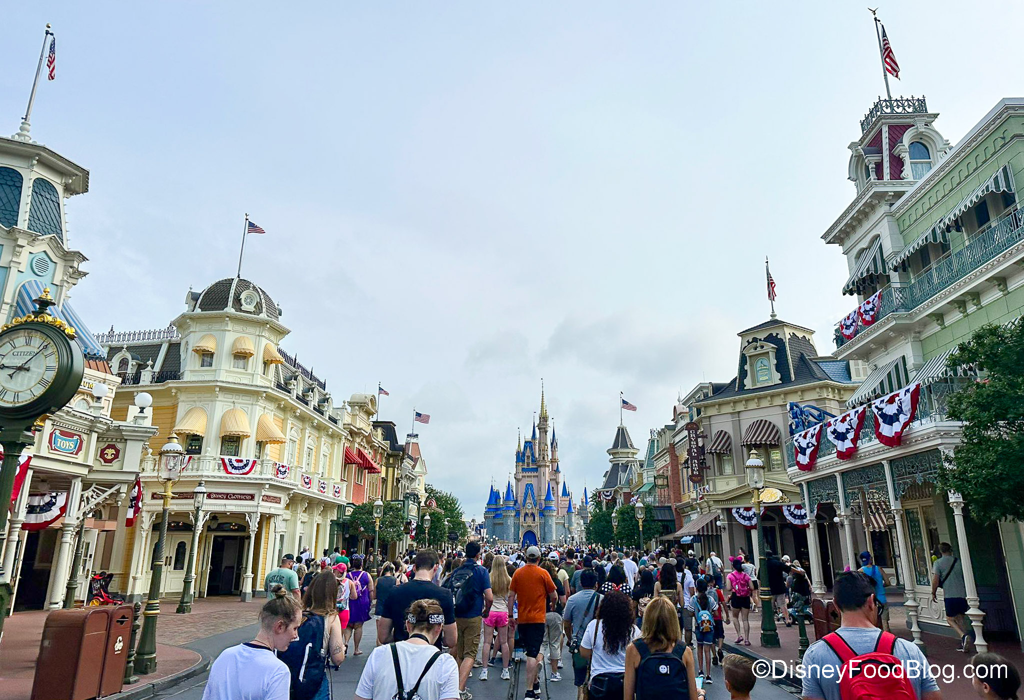 By the time we made it to Main Street, U.S.A., we noticed that it still felt VERY busy, with TONS of people heading towards Cinderella Castle.