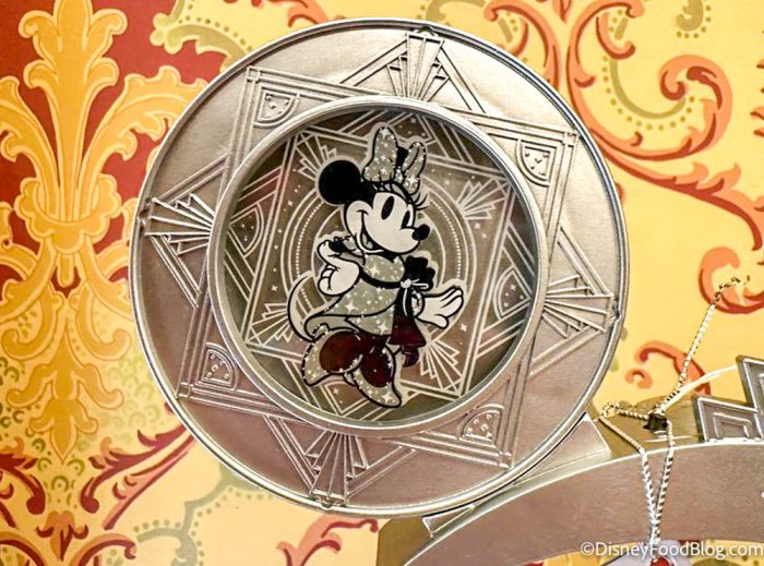 The headband is silver (or “platinum,” apparently) with an Art Deco-inspired style. One ear features Minnie Mouse…