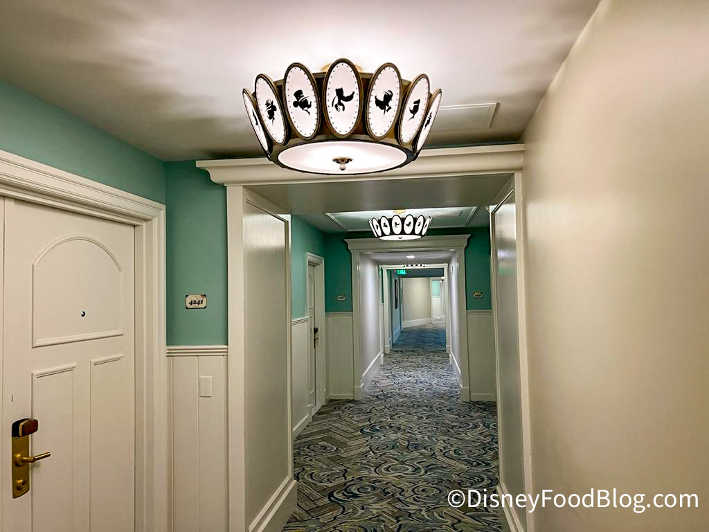Given the charming color palette and light fixtures in the updated hallways, we have high hopes for the new room decor!