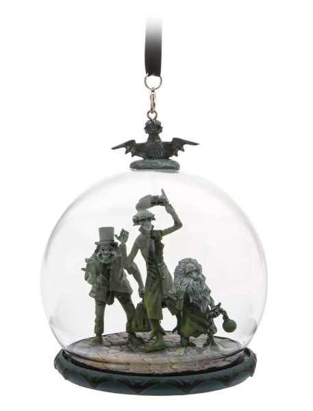 The Hitchhiking ghosts will actually follow you home with this The Haunted Mansion Sketchbook Ornament. Ezra, Phineas, and Gus, the Hitchhiking Ghosts sit in a glass sphere with a bat stanchion crown.