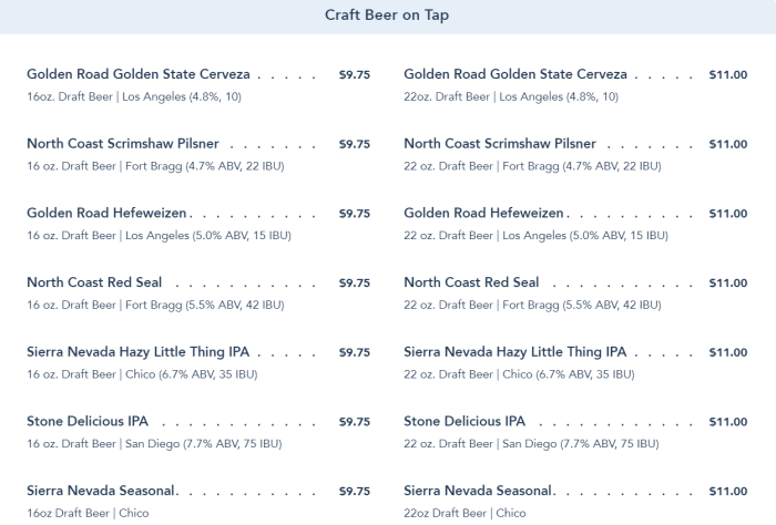 The menu here is fairly straightforward. There are a lot of options for alcoholic beverages, mostly beer because this is a tap house, after all.