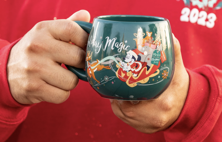 Similar to the Holiday Magic pin is this Holiday Magic mug! It features the same image of Mickey aboard a sleigh filled with presents.