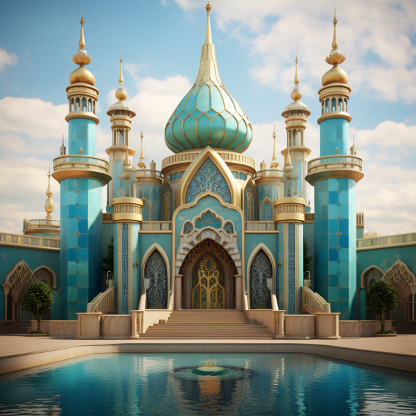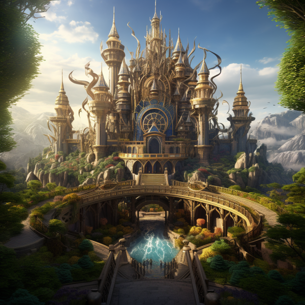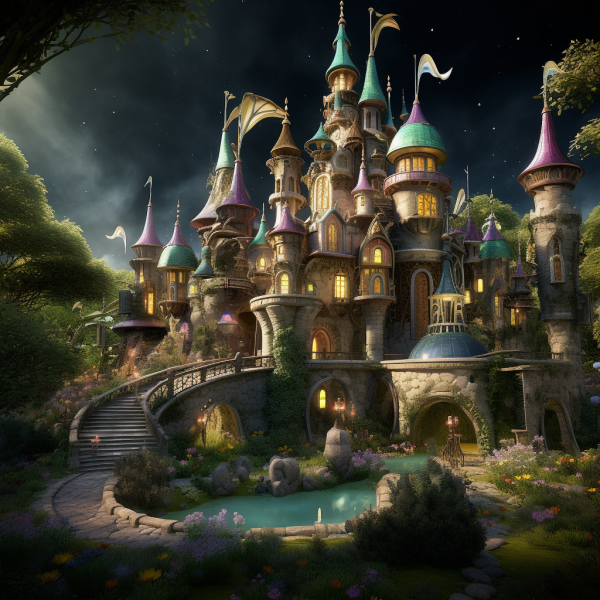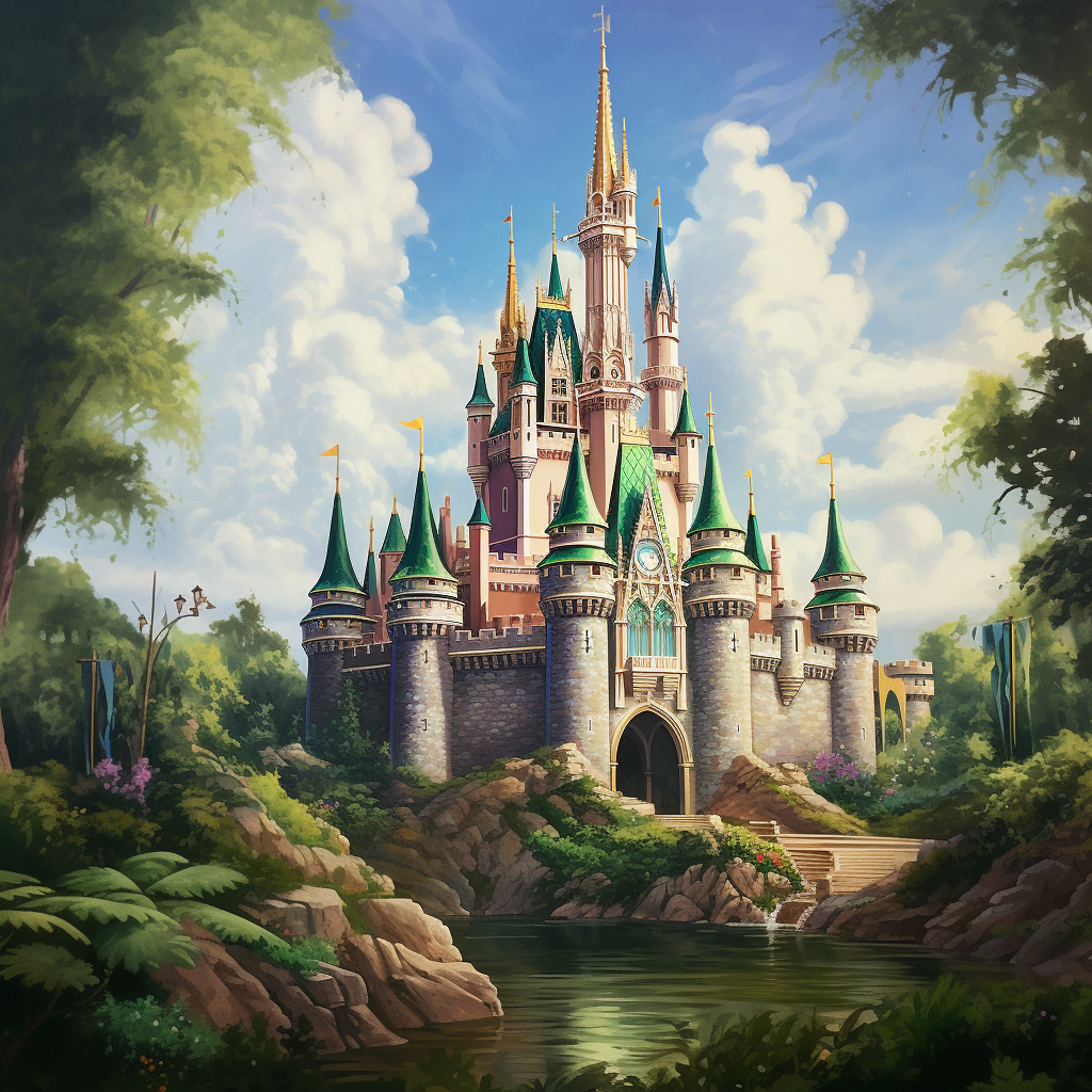 We love that the AI pulled colors from Elena’s dress for this gorgeous castle.