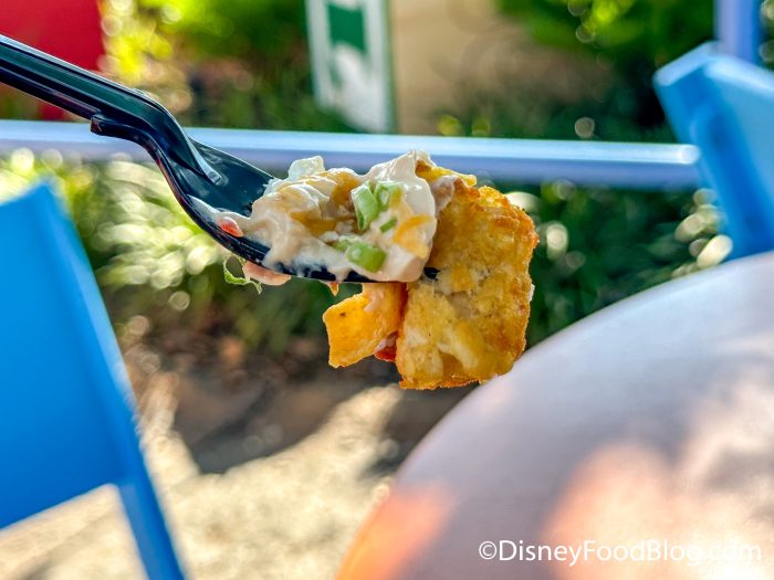 For my late lunch, I ordered the BBQ Brisket Melt, “Totchos,” Raspberry Lunch Box Tart, and the Fourth of July Lunch Box Tart.