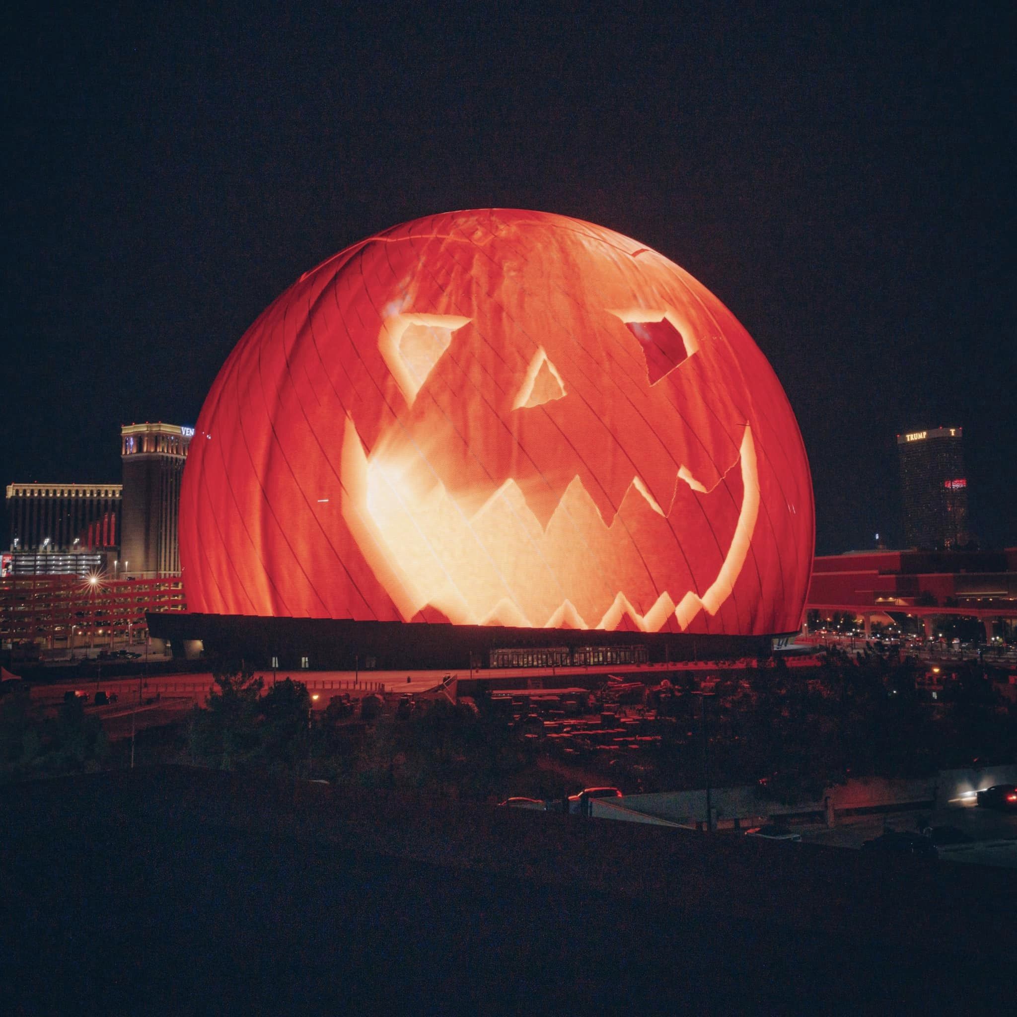 The Sphere even gave us a sneak peek at some holiday lighting schemes, with a Jack-o-lantern for Halloween and a snow globe for Christmas.