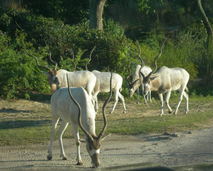First, a Cast Member told us a little more about the addax (often referred to as the white or “ghost” antelope). Here’s the thing, this antelope is sort of like a chameleon in that it can change the color of its fur based on the temperature it’s in. If it’s hot out, its fur is white to help it adapt to the warmer temperature. But if it’s cold, the fur becomes dark brown to conserve heat. BRILLIANT.